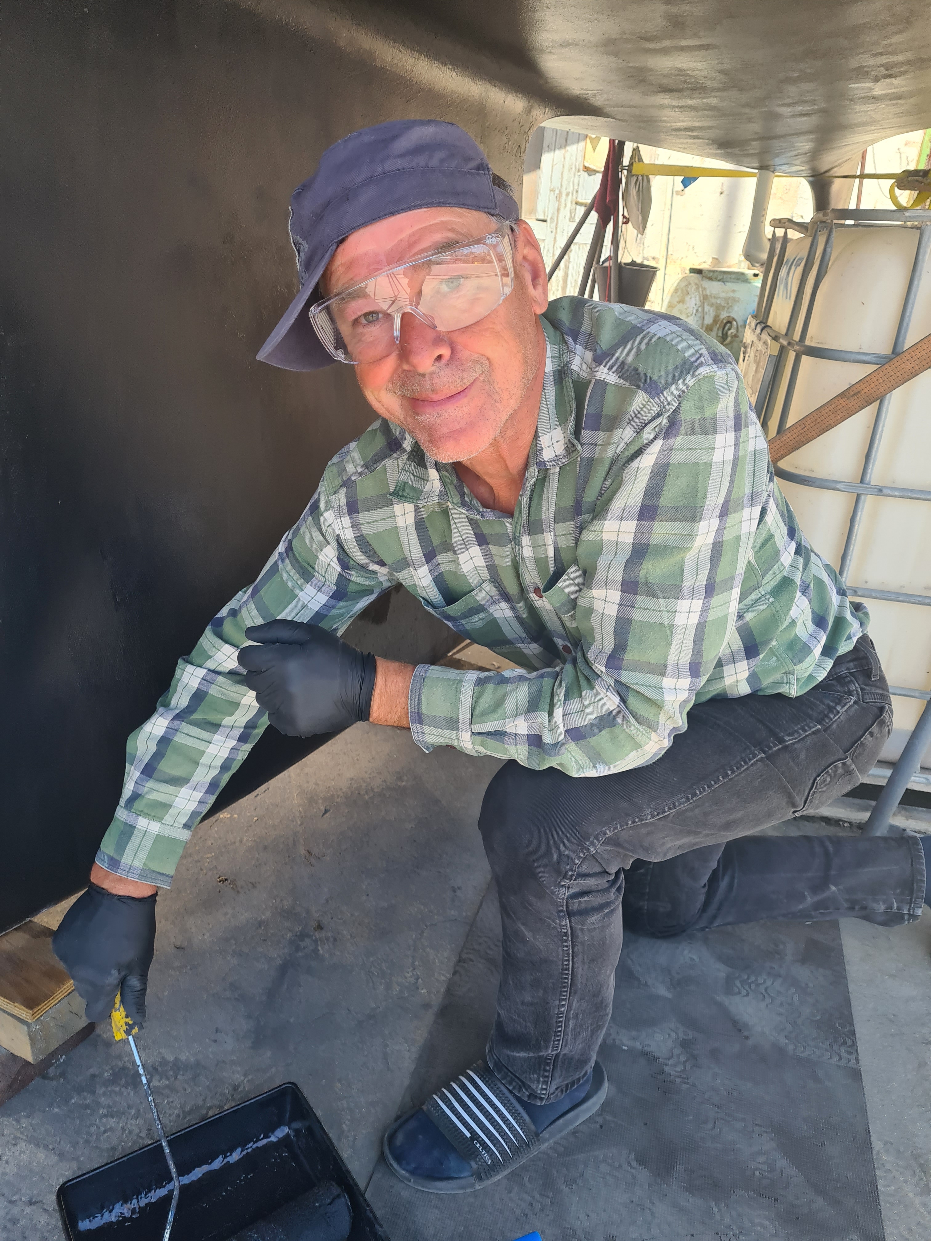 Als de boot op de kant gezet wordt vragen wij de jongens van de kraan de boot niet volledig op de kiel te zetten maar wat ruimte te laten om de onderkant van de kiel te kunnen schoonmaken, inspecteren en van een aantal nieuwe lagen verf (primer en antifouling) te kunnen voorzien. Dat was een vooruitziende blik want aan de achterkant, onder de kiel vinden we een gat! Niet bedreigend voor inwateren van de boot maar wel op weg om het omhulsel van onze loden kiel langzaam te laten oplossen. We halen het rotte polyester weg, laten het drogen, vullen het op met schuim en 2 componentenpasta en werken het geheel af met epoxymatjes en een goede primer voor we er weer antifouling opsmeren. Ondertussen zijn we redelijk bedreven geworden in het dichten van gaten in de boot, we zijn niet meer voor een gat te vangen!