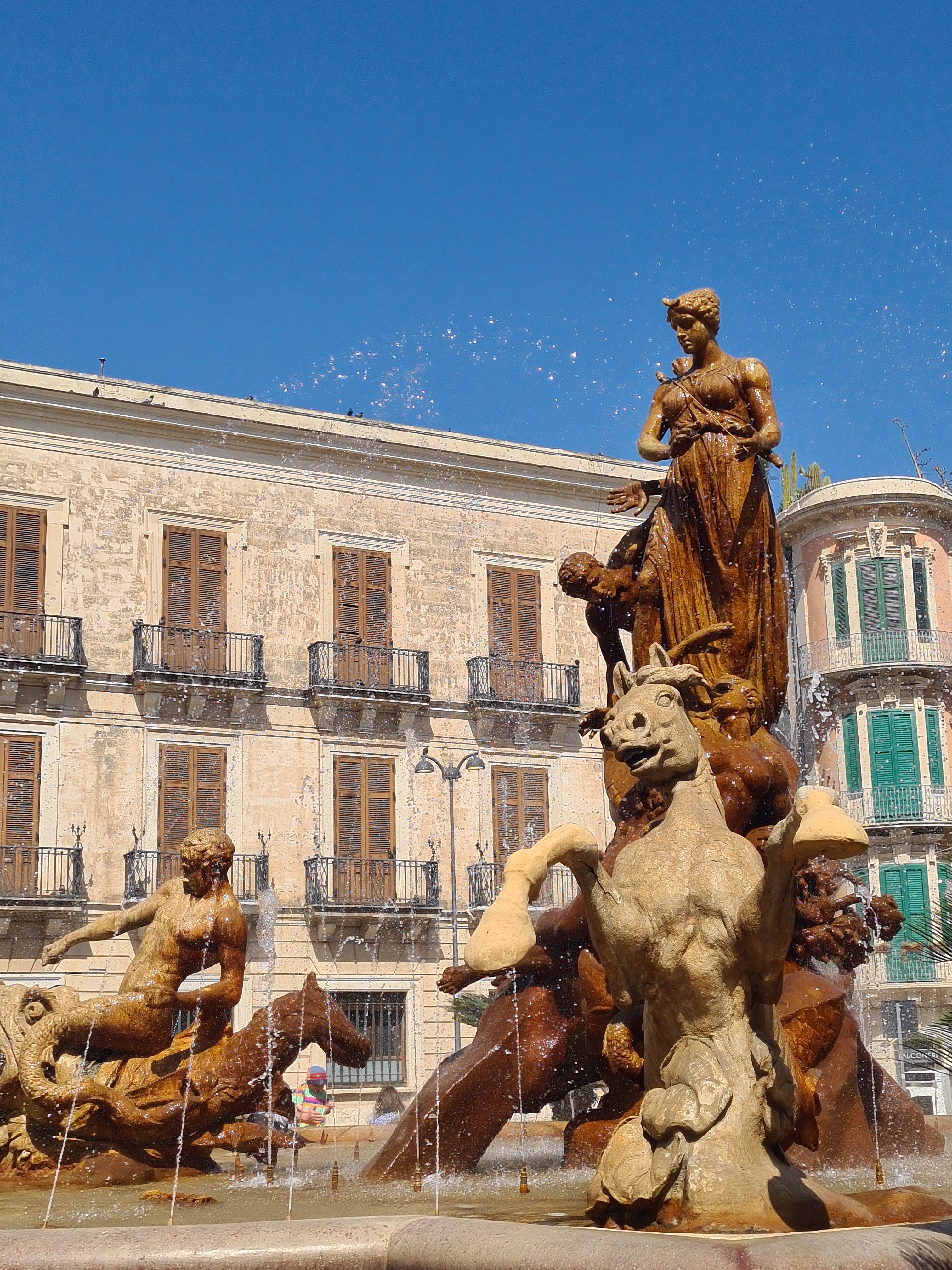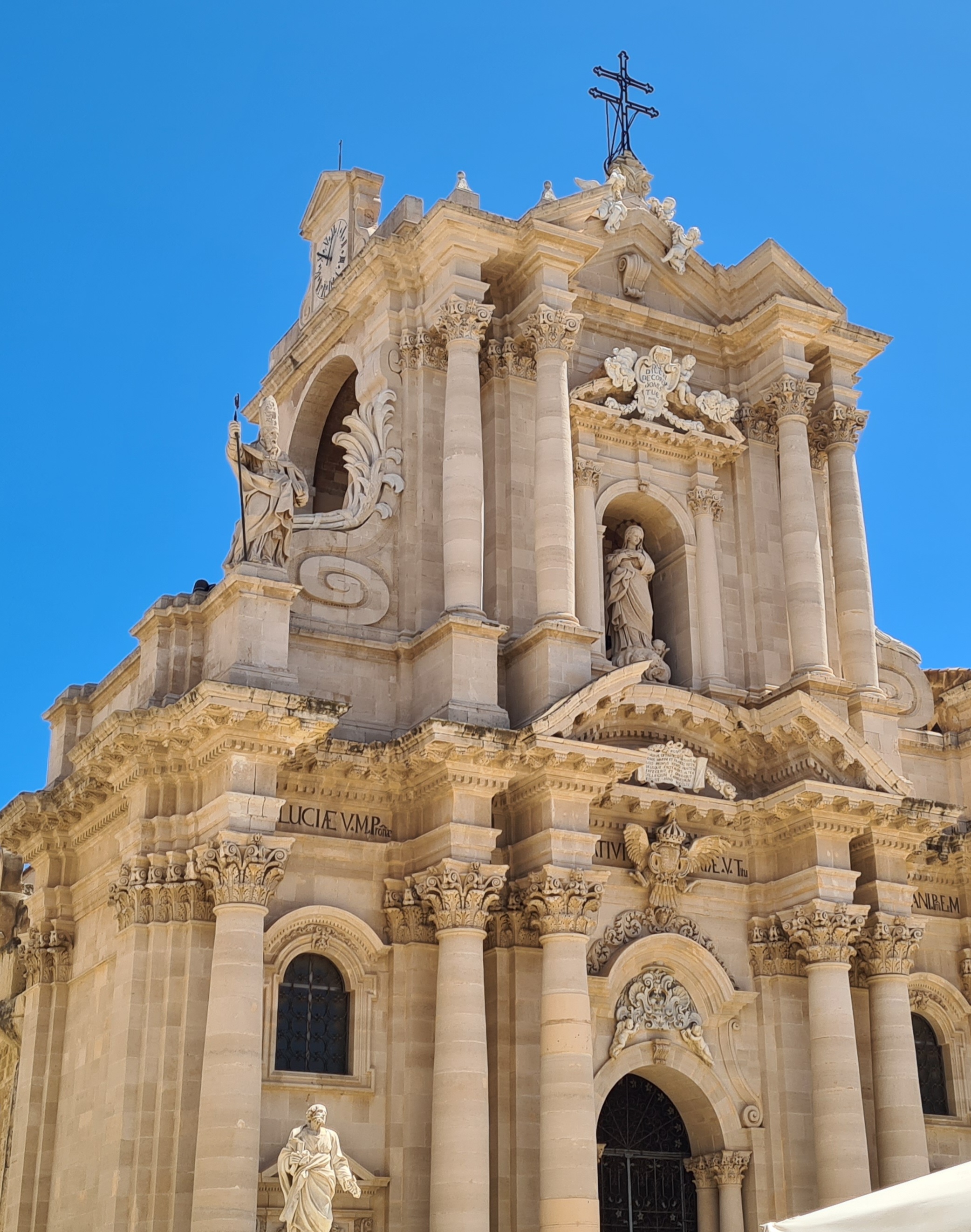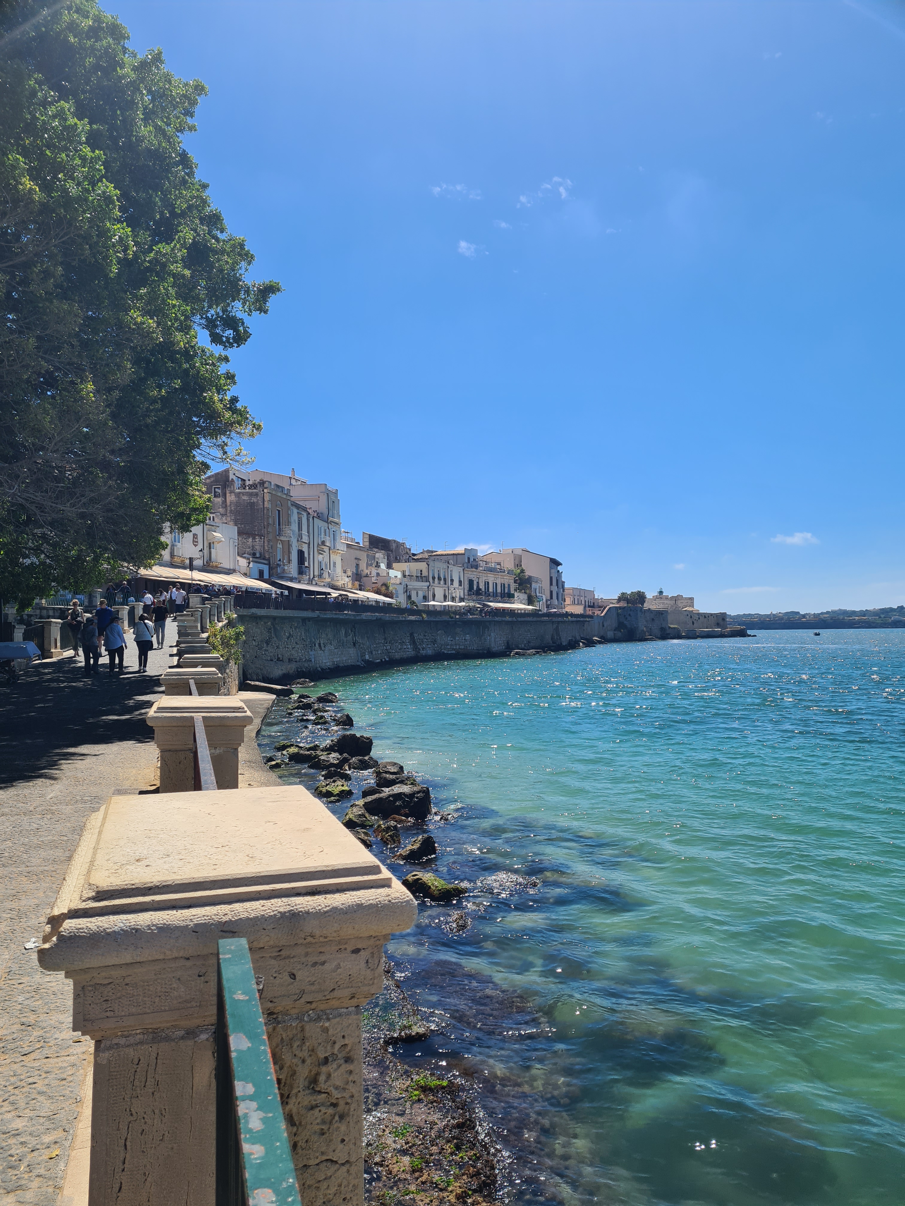Siracusa is mooi! De natuurlijke baai een prima ankerplaats met een prachtig uitzicht op de stad waar we wandelingen maken en ons te vergapen aan prachtige gebouwen, kerken en huizen. Er is een wasserij waar we eindelijk onze smerige kleding kunnen wassen , een brillenwinkel waar mijn zonnebril nieuwe pootjes krijgt, en een bootonderdelenzaak voor een nieuwe hoofdschakelaar (de oude was doorgebrand). Verder vullen we de watertanks en de voorraden, nemen afscheid van de Tara Blue en voelen ons alleen als we na een kleine week de baai uitvaren voor de oversteek van 270 mijlen naar Griekenland!
