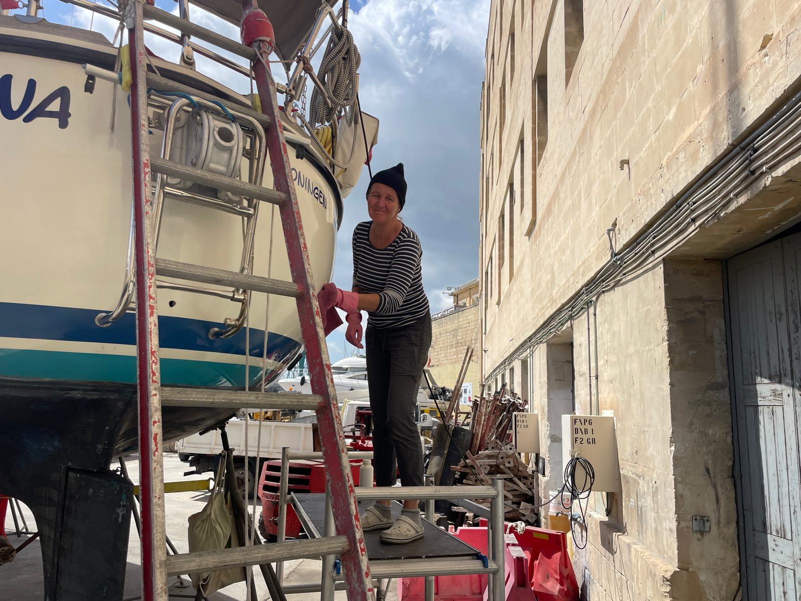 In ons vorige blog gooiden we de lijnen los, na een lange winter in Licata, op weg naar Malta. Daar hebben we Luna op de kant laten zetten en ruim 10 dagen besteed aan het nodige onderhoud. Op het lijstje stonden 4 nieuwe afsluiters, 1 nieuwe huiddoorvoer voor het toilet, een laag antifouling, het poesten van de romp en schoonmaken van de schroef. De huiddoorvoeren zijn gaten onder de waterlijn van Luna en het is spannend geweest daarmee aan de slag te gaan. Het laatste wat we willen is dat er onderweg water in de boot komt. De reden dat we er nu aankomen is dat na een aantal jaren het zoute water de kwaliteit van de messingafsluiters kan aantasten en deze broos kan maken waardoor scheuren of breuken kunnen ontstaan. Van een aantal onderdelen kenden we de kwaliteit niet, één kwam van de bouwmarkt en om het zekere voor het onzekere te nemen kocht Thomas corrosieresistente onderdelen bij een goede watersportwinkel in Bremen die ze netjes via DHL afleverden op Sicilië. Het inbouwen deed hij vlot en probleemloos, de (theoretische) voorbereiding was zoals gewoonlijk uitstekend en dan weet Thomas precies hoe het moet! Kanjer! Soms twijfel ik aan mijzelf in deze acties maar ik weet dat wanneer Thomas iets doet dat het goed is.