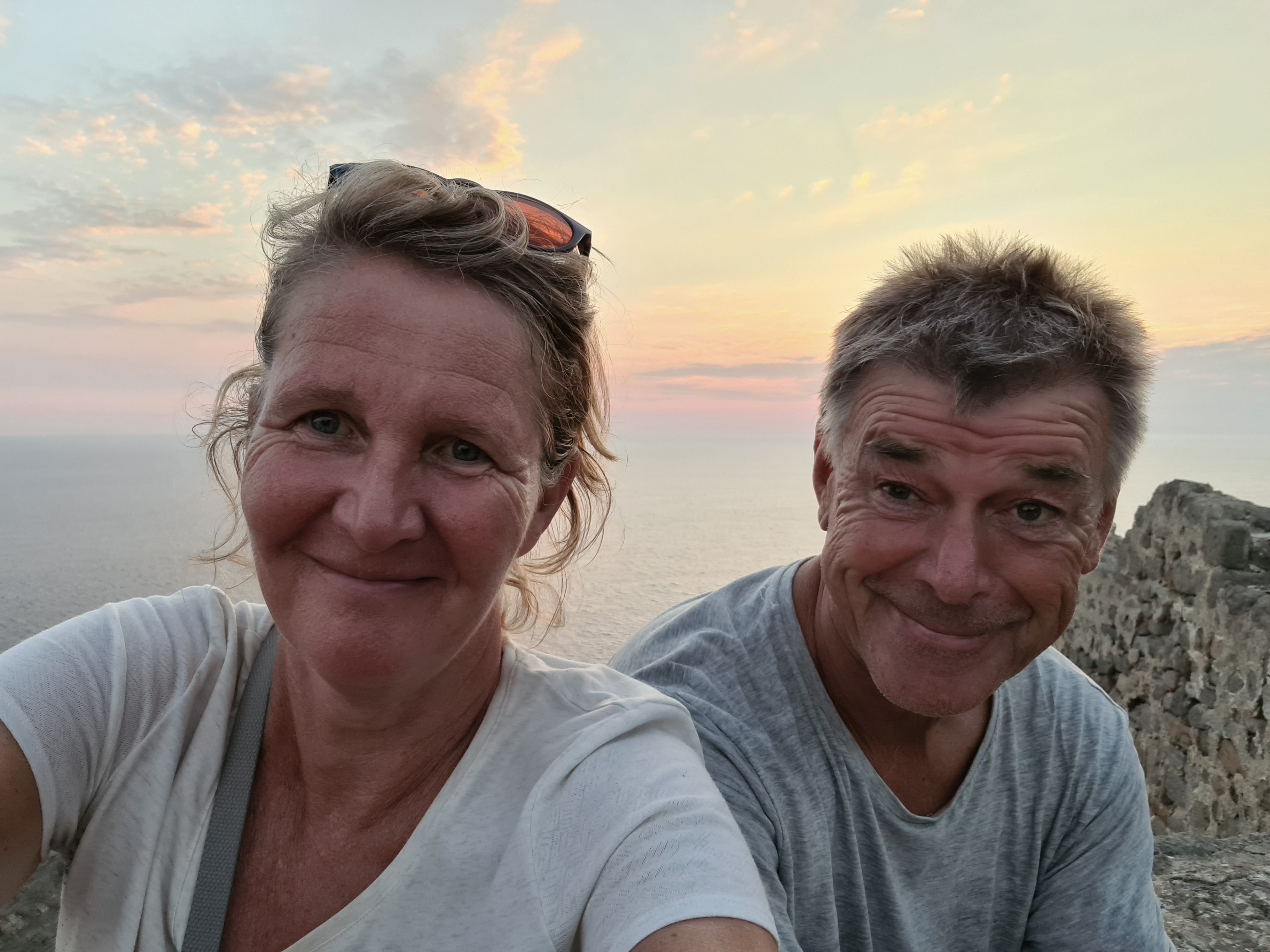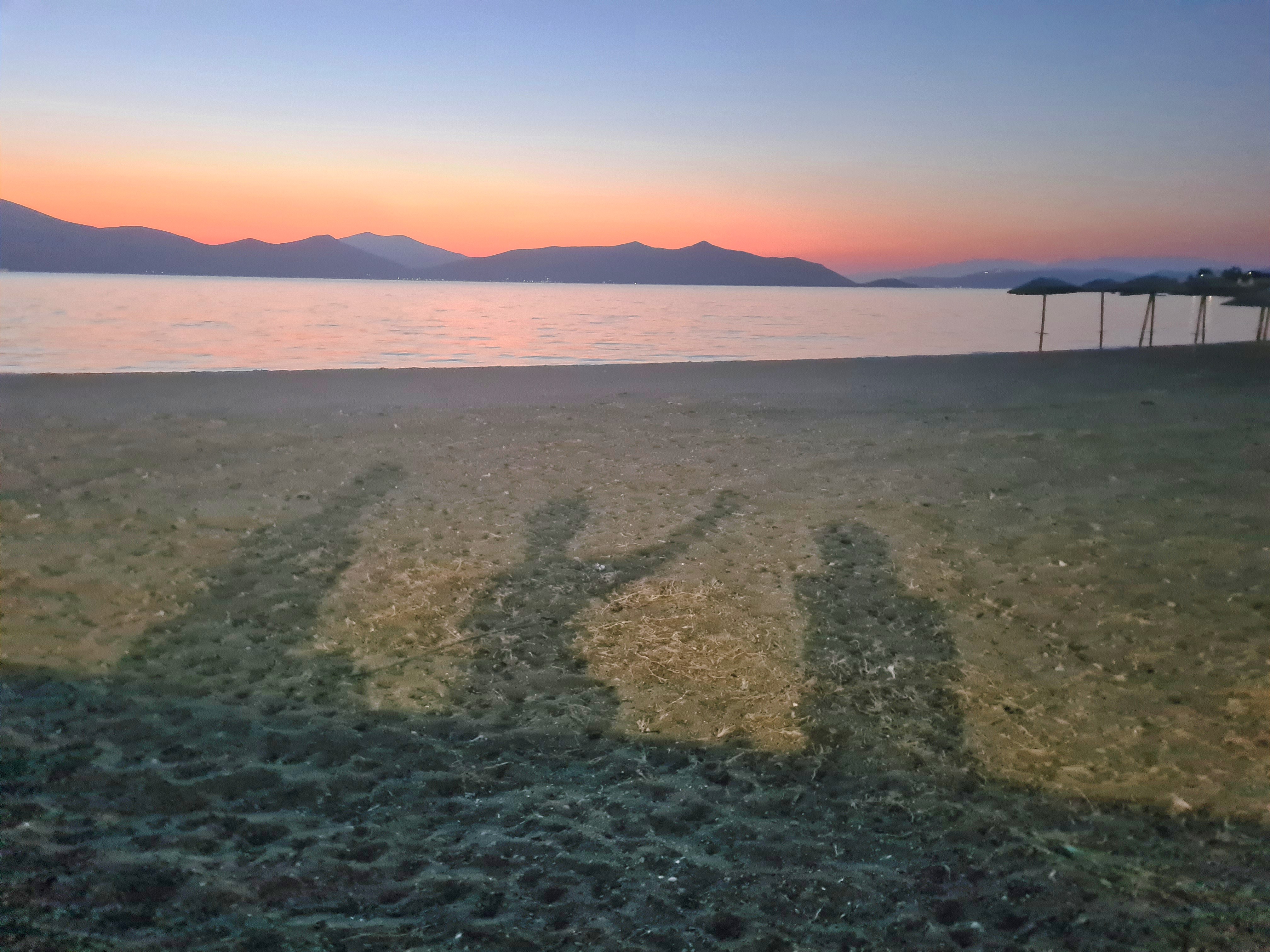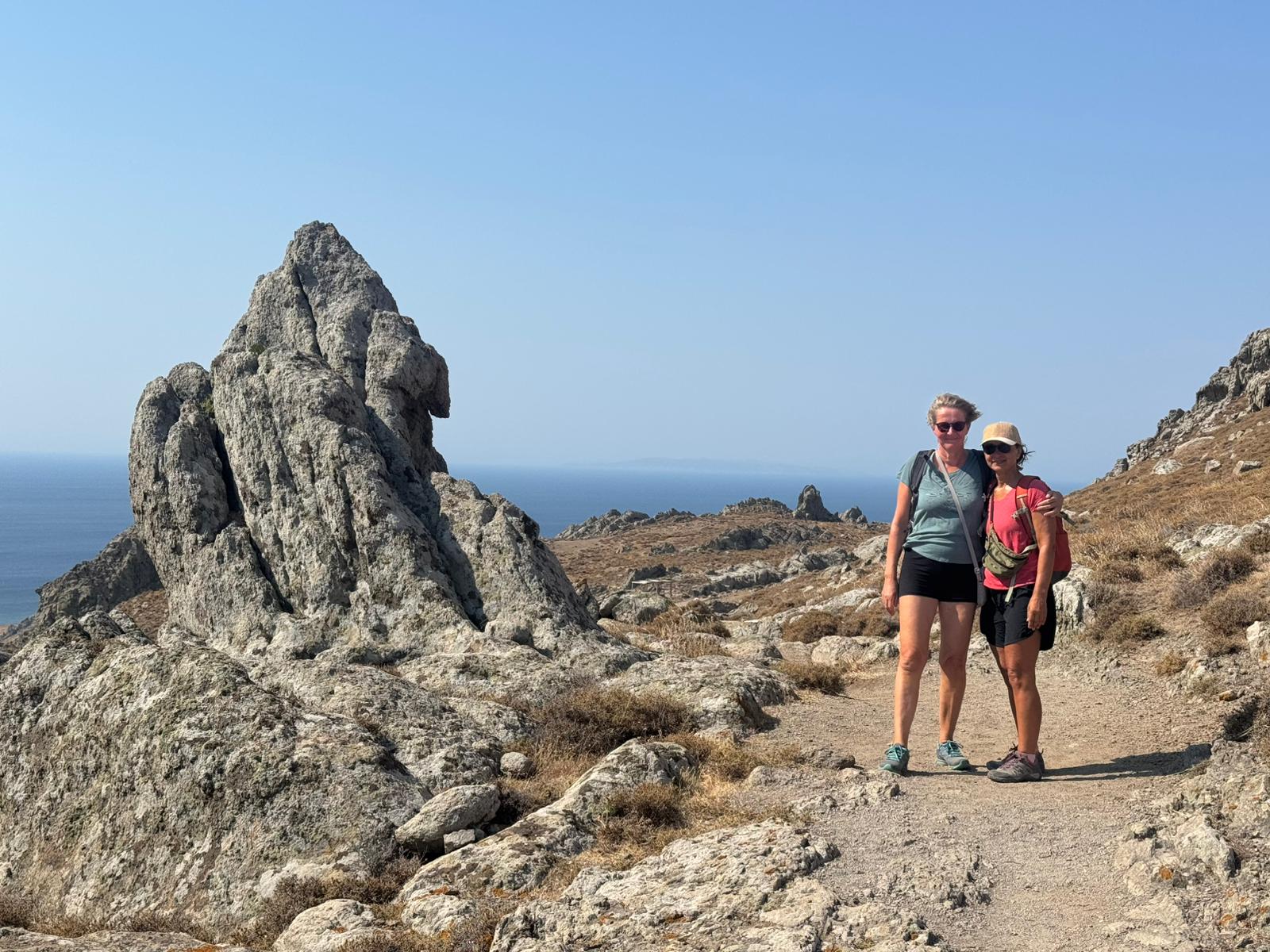 Maar gelukkig zijn we niet alleen! We zijn naar Lemnos gezeild vanaf Chalkidiki, zo’n 50 mijl westelijk, om tijd te kunnen doorbrengen met onze vrienden Mayte en Niels van de Muskat, die we voor het laatst eind april op Kefalonia zagen. Zij varen hier al een maand rond en houden van foilen, een surfbord en een los zeil waarbij je met veel wind uit het water wordt getild, daar heb je dan wel wat wind voor nodig. We vermaken ons met z’n vieren uitstekend gedurende 10 dagen: we wandelen in de vroege ochtend naar een prachtige kerk in een grot (Panagia Kakavioutisa), doen zeilwedstrijden, zwemmen en SUPpen, bereiden heerlijke maaltijden aan boord, spelen Rummikub en gaan uit eten wanneer de gelegenheid zich voordoet. Met pijn in ons hart nemen we afscheid, zij gaan verder oostwaarts en in het najaar terug naar Sicilië, wij gaan terug naar Chalkidiki om daar de laatste warme weken van de zomer door te brengen. Misschien zien we elkaar volgend jaar weer terug of anders het jaar erop. Het is één van de lastigste dingen van het zwervend bestaan, afscheid nemen van mensen die we onderweg treffen en met wie er een bijzondere band is ontstaan.