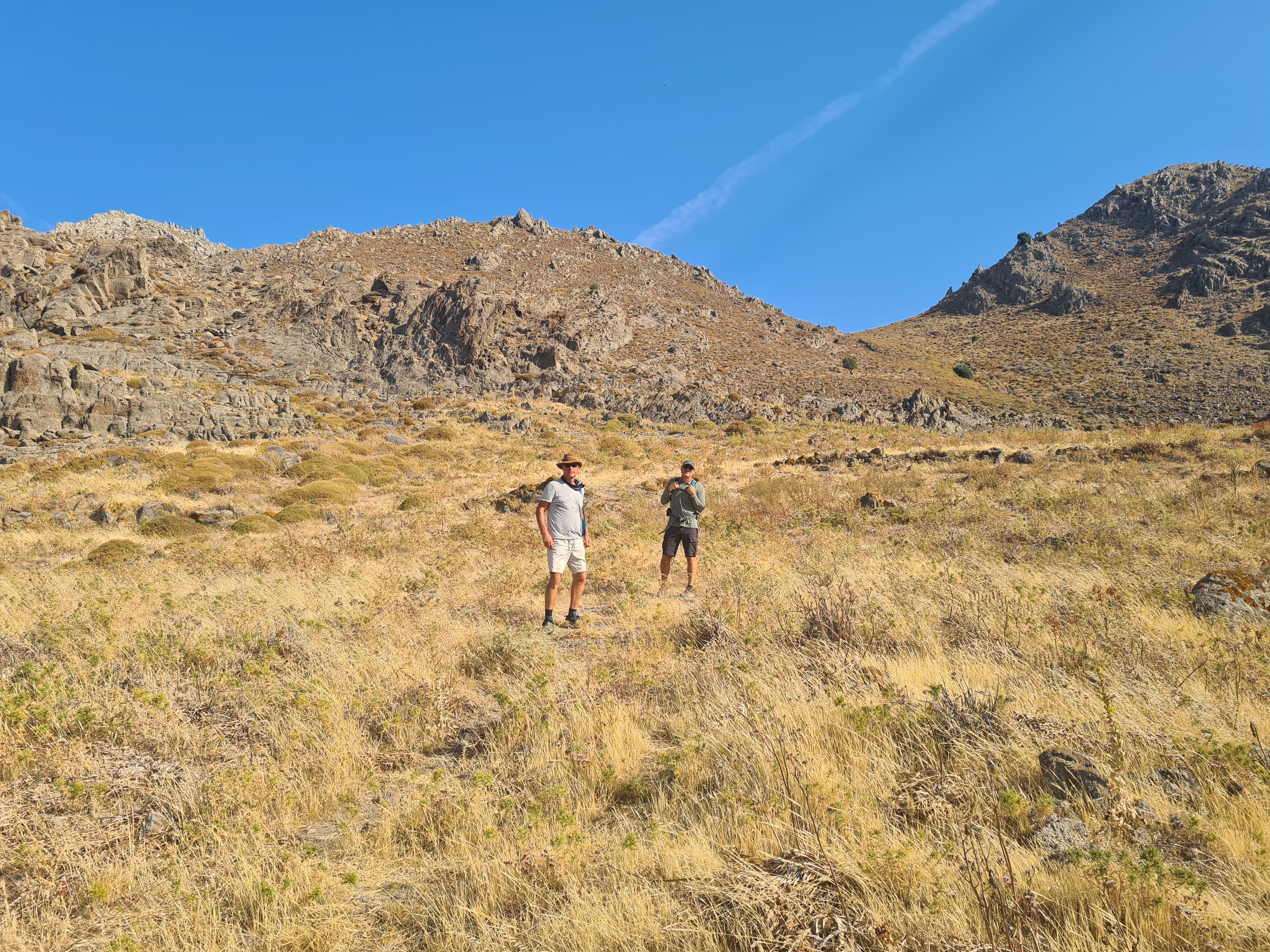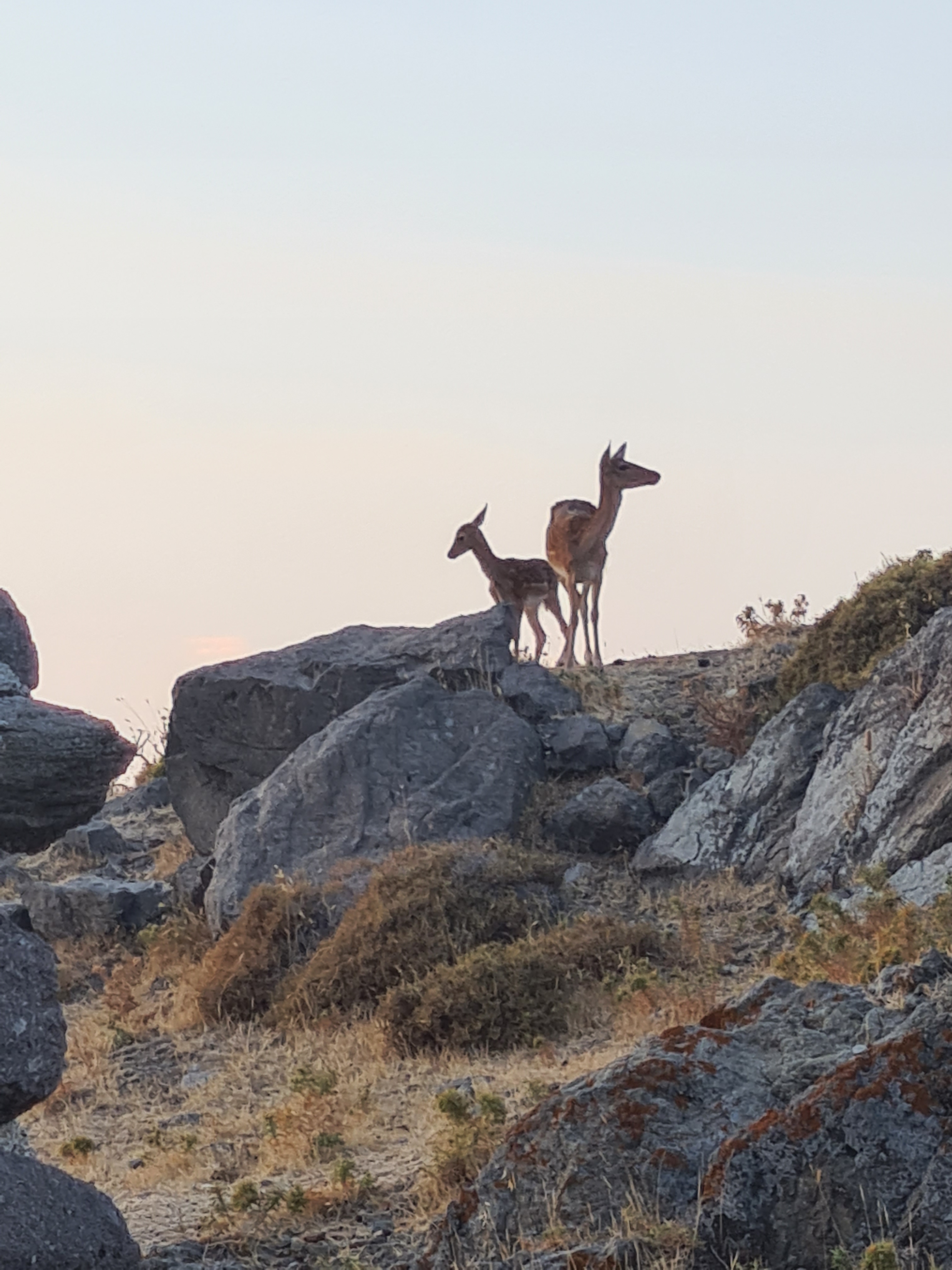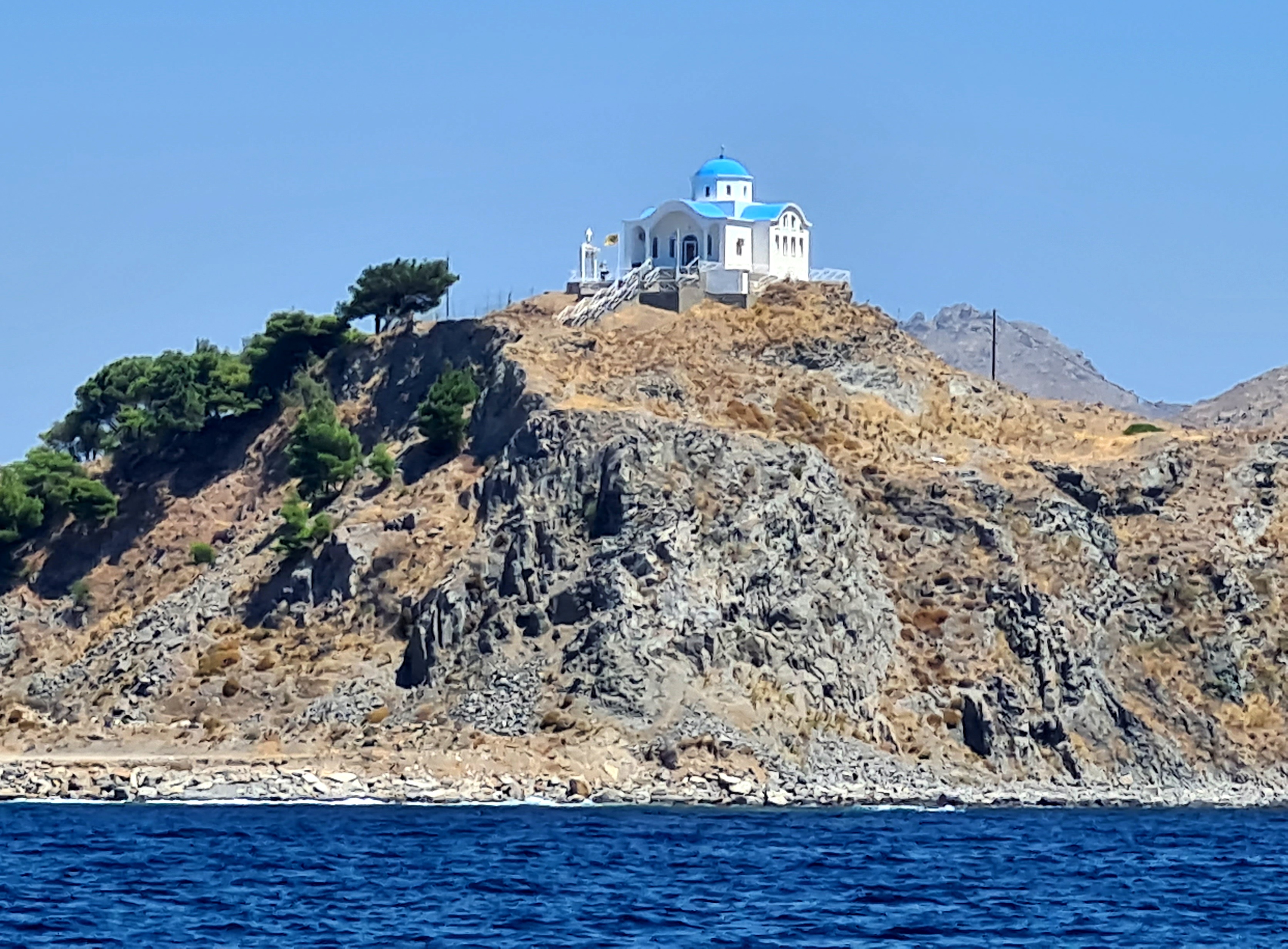 In de loop van de ruim 2,5 week die we op dit eiland doorbrengen komen we er achter dat het ontbreken van veel zeilboten een reden heeft: om de paar dagen blaast een uitloper van de Meltemi over het eiland, en hoewel er altijd een zeer goed beschutte baai voor handen is om te schuilen, is het daar best eenzaam als je drie dagen aan je boot gekluisterd zit omdat zelfs zwemmen al een oefening voor gevorderden is bij bijna 30 knopen wind (7 Beaufort). Varen met de bijboot naar het dichtstbijzijnde verlaten strand is ook een hobbelige aangelegenheid en biedt niet veel vertier.