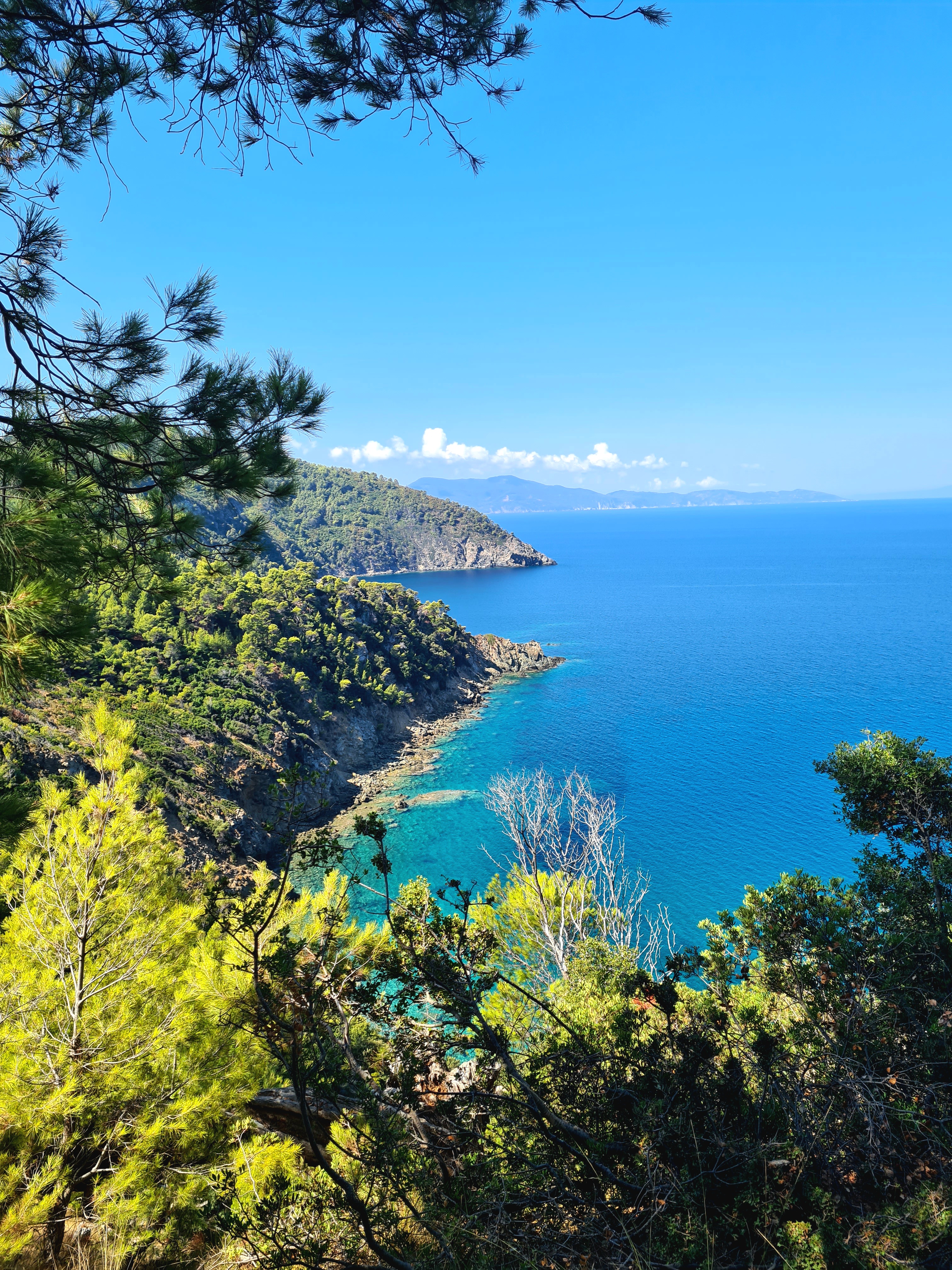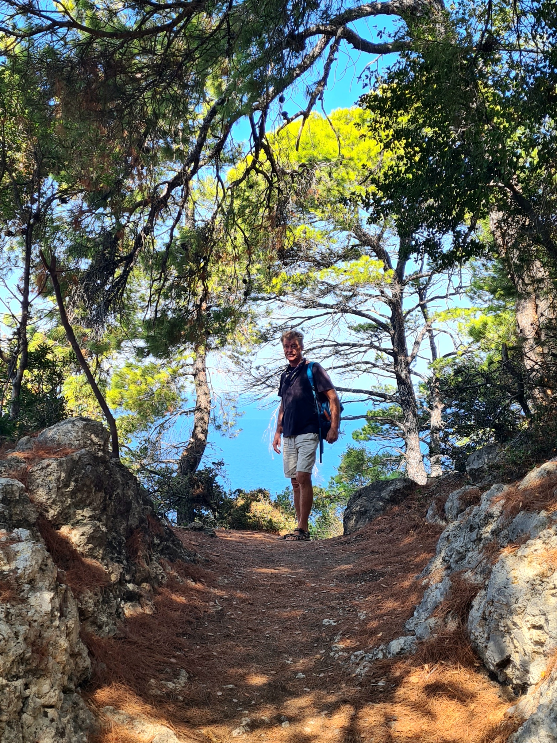 Begin september verlaten we Chalkidiki en gaan terug naar de Sporaden. We hebben deze eilanden, en de nabijgelegen Golf van Volos, eind juni vanwege hitte en drukte overgeslagen. De overtocht van Sithonia naar het Sporadeneiland Alonissos is een snelle tocht, met bijna 30 knopen wind, gelukkig vrijwel pal van achteren en bijbehorende golven, scheuren we weg uit onze zomerslaap. Het is een beetje hollen of stilstaan, deze Griekse zomer, óf het waait óf helemaal niet. Zonder kleerscheuren bereiken we Votsi op Alonissos, waar we Luna in een beschutte baai/haven tussen het anker en de rotsen met 2 lange lijnen vastleggen. Voor het eerst in tijden maken we weer langere wandeltochten. Het eiland is schitterend mooi en klein genoeg om een groot deel te voet te kunnen verkennen.