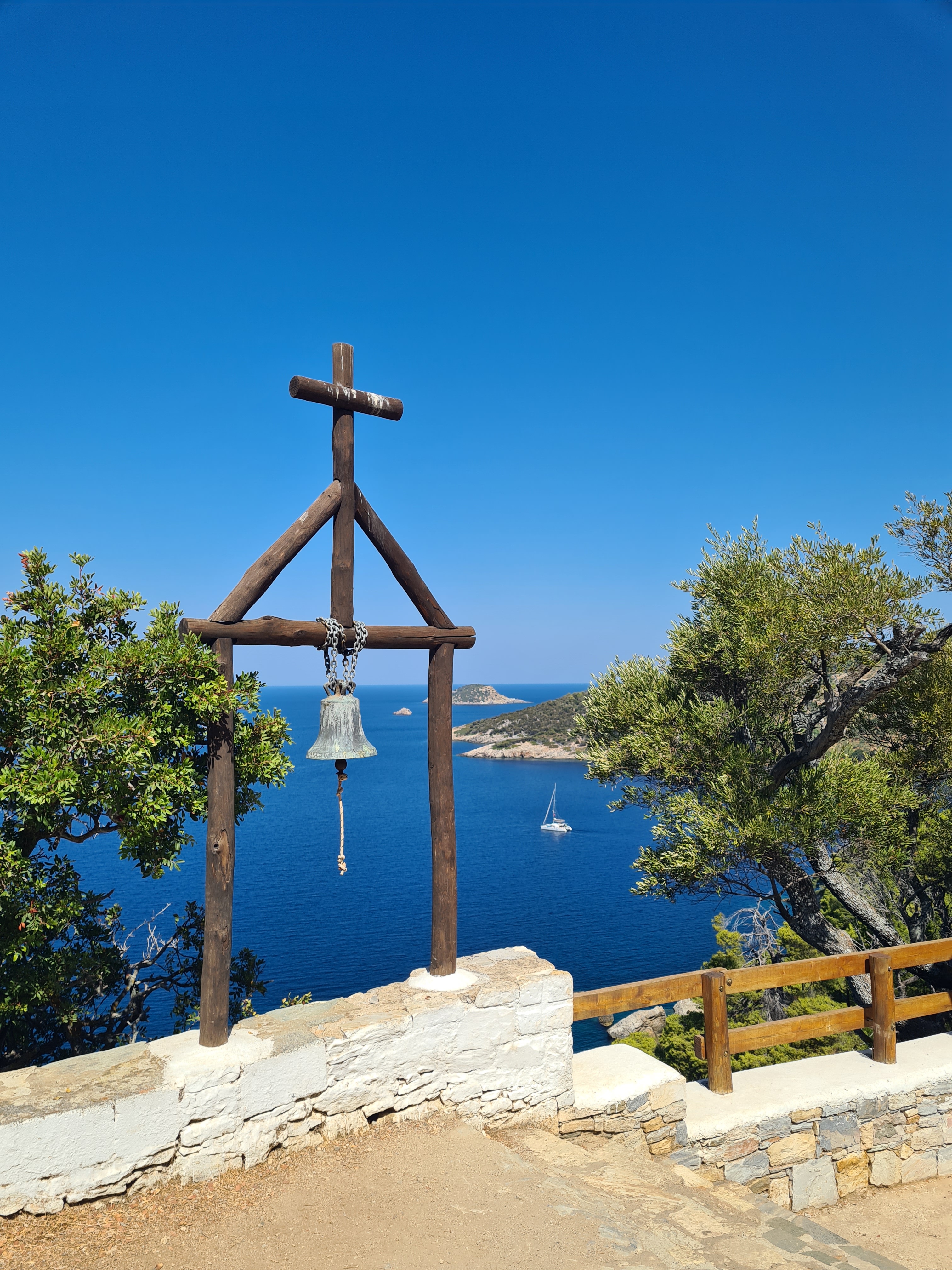 Omdat dat alles een beetje vreemd is en te veel gedoe voor Thomas (zijn baard wil ook niet echt doorgroeien) besluiten we in de weken dat we rond de schiereilanden van Chalkidiki zeilen zelf een excursie met Luna te organiseren om de kloosters van dichterbij te bewonderen. Hoeveel afstand we precies moeten houden van de kust, met vrouw aan boord is dat blijkbaar net weer even anders, weten we niet en houden de ‘veilige’ marge van 1 mijl aan… we komen er zonder boete of waarschuwing vanaf dus gaan er vanuit dat we ons aan de ‘regels’ hebben gehouden. Na een paar kloosters in de verte en een bezoek aan Ouranopoulis, het grensstadje voor je de monnikenrepubliek betreed en waar je Orthodoxe priesters live kunt zien rondlopen sluiten wij het thema Athos af. Het zicht op de berg is voor ons het meest indrukwekkend en daar kunnen van afstand nog uitgebreid van genieten. Overigens was bij de toetreding van Griekenland in de EU Athos wel een hoofdpijndossier, gelijke rechten zijn hier ver te zoeken. Vrouwenorganisaties verzetten zich, tot nu toe zonder succes, tegen de regels die gelden voor dit schiereiland.