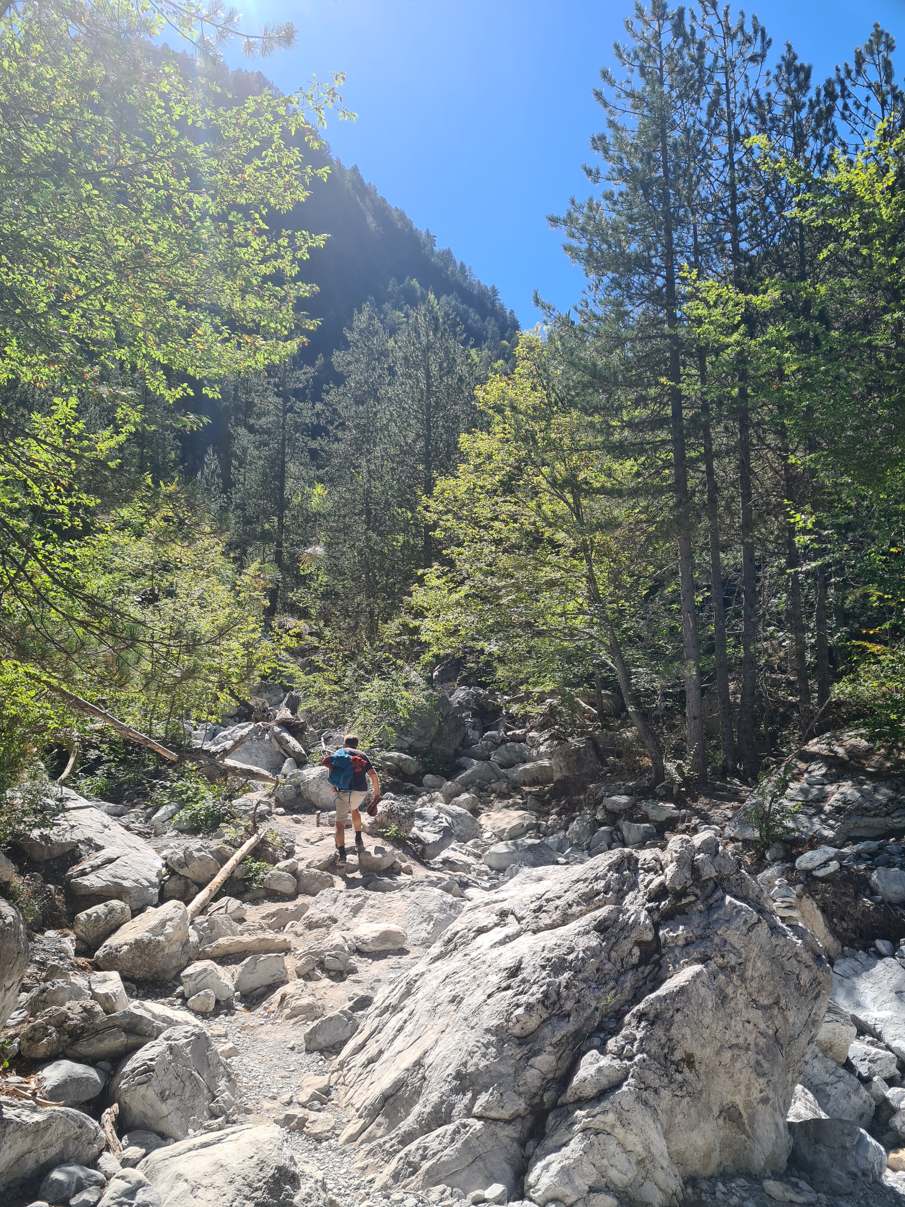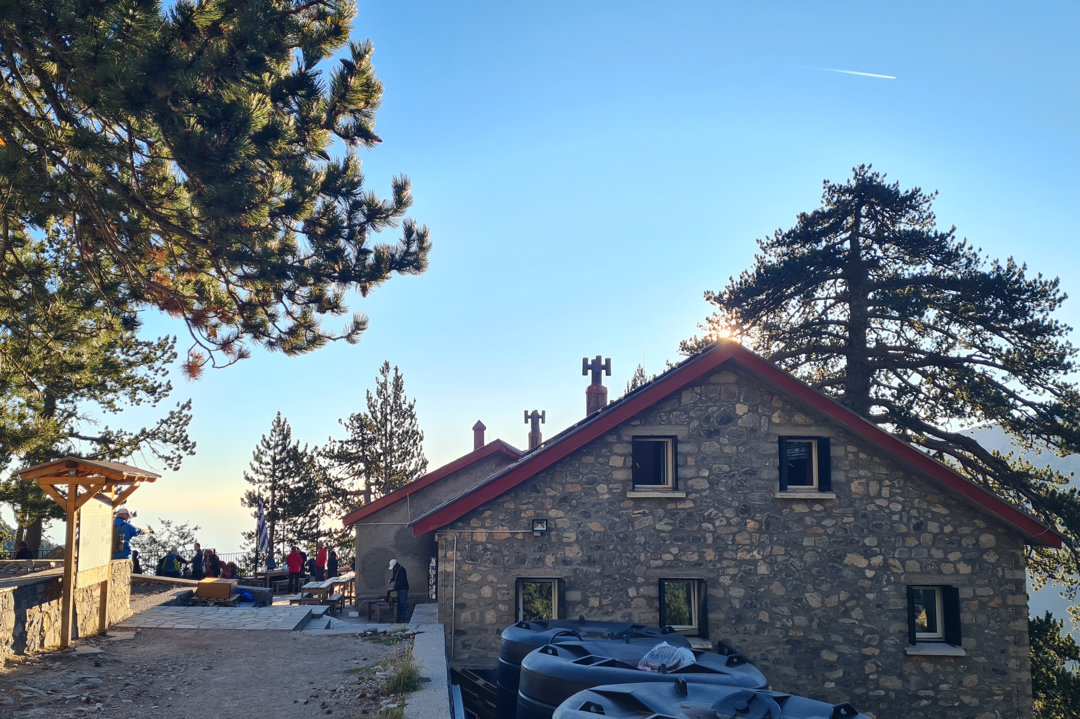 Dan staat de tocht naar de baai van Volos (en omgeving) op het programma. Het Mount Olympus Nationaal park bezoeken we vanuit de haven van Volos. Na twee uur in de auto laten we deze achter op 1100 meter hoogte en wandelen/klimmen 1000 meter omhoog naar de berghut van de Griekse bergvriendenclub. Het is er schitterend mooi, én koud … Met bezweet lijf, in korte broek en T-shirt, arriveren we eind van de middag bij de hut. De zon is bijna onder en er staan ijsbloemen op de ramen van de slaapzaal! Gelukkig hebben we warme kleding mee en zijn er voldoende dekens om weer een beetje op te warmen, maar van 30 naar bijna 0 graden is een heftige overgang. De volgende dag beginnen we vroeg aan de afdaling want die willen we rustig aan doen. We zijn per slot van rekening 60+ en onze benen en voeten weten dat ook, 1000 hoogtemeters zijn er heel veel! Gelukkig kunnen we de 3 dagen erna languit op de kuipbank, het 3 treden trapje de kajuit in is al een enorme uitdaging.