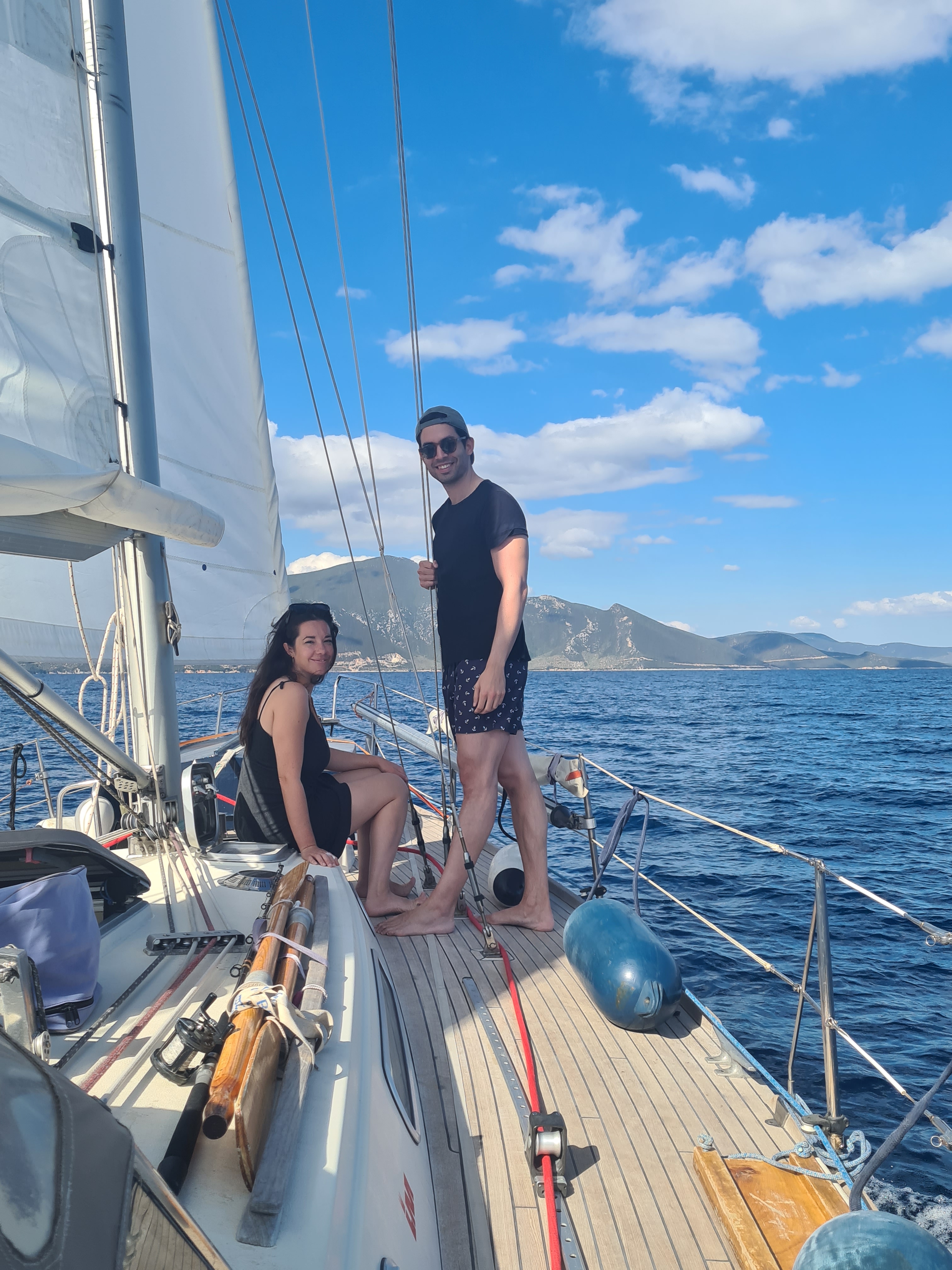 En we krijgen bezoek! Nicht Hanna en vriend Baris houden vakantie in Noord Griekenland en bezoeken ons in Agia Kiriaki, op het schiereiland Pilion. Een mooiere plek hadden we niet kunnen bedenken; we meren af bij Manolas, een Griekse Taverna met gelijknamige eigenaar, die behalve prima maaltijden en goede wijn ook beschikt over een paar gastenkamers. We maken een mooie zeiltocht met ankerstop, SUP excursie en lunch in een prachtige baai. Na twee dagen nemen we afscheid: zij gaan verder hun vakantie vieren en wij maken ons op voor de laatste bestemming van dit seizoen! De Griekse zomer is bijna ten einde…